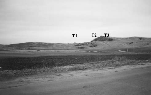 mounds (Photo 1) have been identified, from North to South, in order, as T1