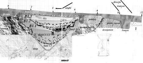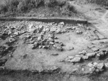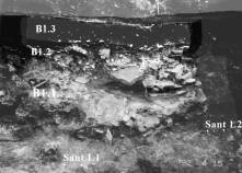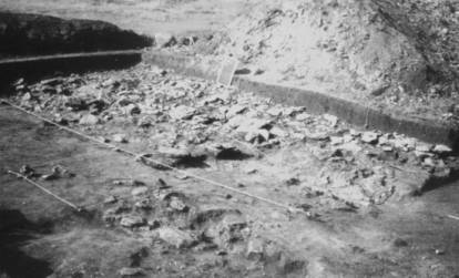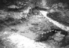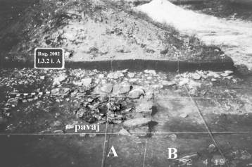 big slabs of stone, horizonthally arranged. This pavement was observed under B1 level and westwards from