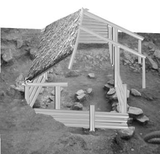 part of house 3 (L3). A small interesting pit house (B 5) with a porch and a