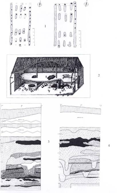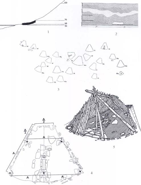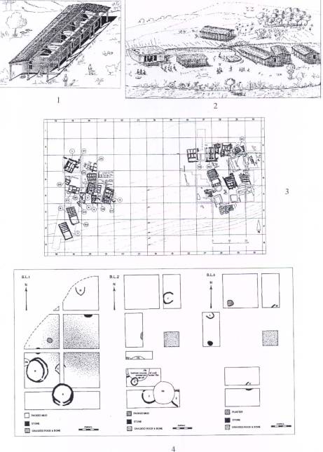 Reconstituirea unei case şi a planului aşezării VI (după Eichmann 1991).