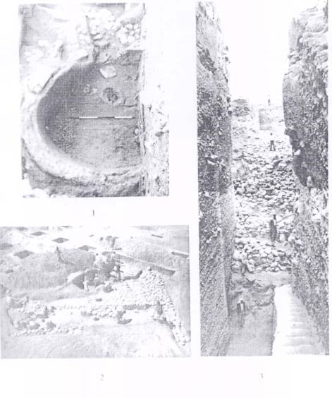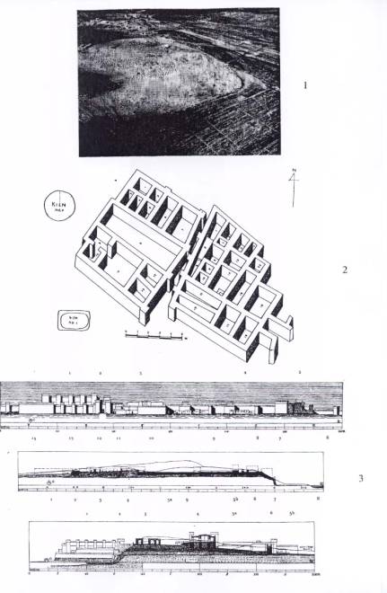 Fig. 8. 1. Tell Hassuna. Statigrafia aşezării (după Lloyd, Safar 1945); 2. Tell Hassuna.