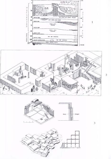 Fig. 9. 1. Ninive. Statigrafia aşezării (după Gut 1995); 2. Yarim Tepe I (după Merpert, Munchaev 1973); 3. Umm