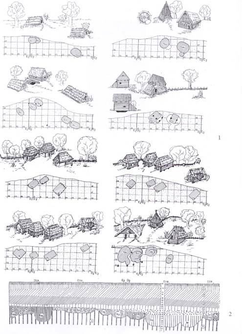 1. Donja Branjevina. Stratigrafia aşezării (după Karmanski 1975); 2. Ocna Sibiului.