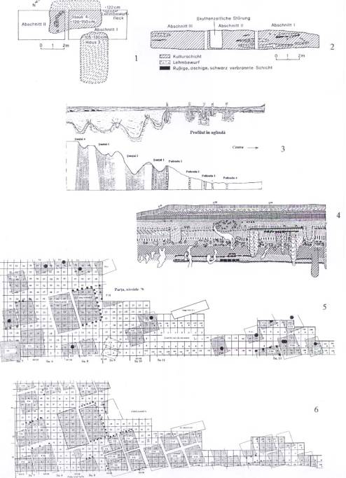 4. Parţa. Stratigrafia aşezării (după Lazarovici şi colab. 2001); 5.
