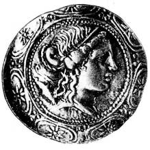 caracteristică fizionomiei zeiţei Artemis de pe monedele originale,