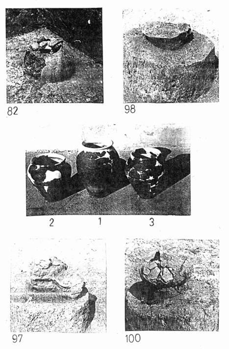 Pl. V. Morminte de incineraţie in situ: M 82, 97, 98, 100 şi urnele recuperate din M 1-3.