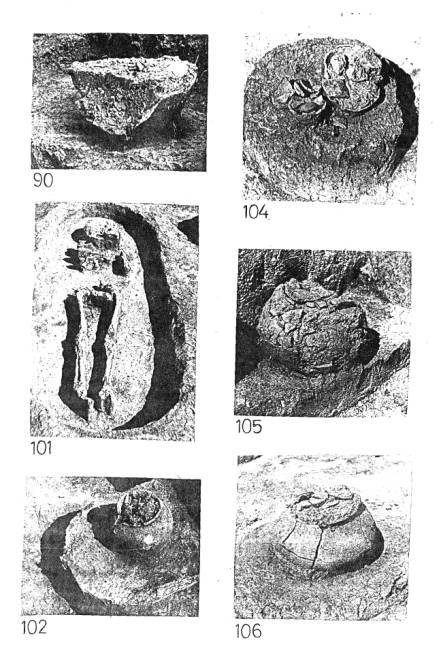 Pl. VI. Morminte de incineraţie: M. 90, 102, 104-106 şi de inhumaţie (M.10).