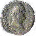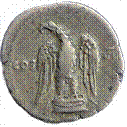 Av. IMP CAESAR VESPASIANVS AVG; Rv. COS-VII RIC II, no.: 99a, Roma, 76, D, A: 6, weight: 3,12g, size: 19,3x17,4mm. Description: Eagle on cippus whith head to left. Head to right, laureate. Inventar number: 14027.
