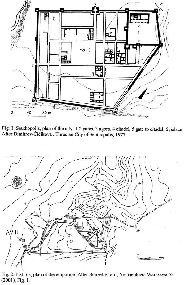 Anderson, H.D. et alii, eds. 1997: Urbanisation in the Mediterranean in the 9th to 6th centuries B.C., Acta Hyperborea 7, Århus Antonova, V. 1995: Šumenska krepost, Šumen Archibald, Z. 1998: The Odrysian Kingdom of Thrace: Orpheus Unmasked, Oxford UP Balabanov, P. 1984: Trakijskijat tjursis blizo do Burgas, Izv. muzeite na ju-ist. Bulgaria 7, 11-38 - 1986: Gradovete v drevna Trakija predi pochodite na Filip II, in: Poselišten život v Trakija, II. simpozium, Jambol 1986, 41-59. Balkanska, A 1974: Die thrakische Sztadt Tyrzis, Thracia 3 1974, 315-19. Bötger, B. 1995: Griechen am Don, Die Grabungen in Tanais, Arch.Anzeiger 1995, 99-118, Bouzek, J. 1990a: Thrákové, Praha, Panorama - 1996: Palastartige Anlagen im Schwarzmeergebiet, in: W. Hoepfner - G. Brands (eds.), Basileia, Die Paläste der hellenistischen Könige, Mainz , 213-220. - 1997: Greece, Anatolia and Europe: Cultural Interrealations in the Early Iron Age, Jonsered (Åström) Bouzek, J., Domaradzki, M., Archibald, Z. 1997: Pistors I, Excavation and Studies, Prague Bouzek, J., Domaradzka, L., Archibald, Z., eds. 2002: Pistiros II, Prague Božkova, A., Delev, P., Alexandrov, S., Valčeva, D., Prokopov, I. 1998: Drevnosti ot sredna Mesta, Archeologičeski proučivanija po traseto na p't II-19, Goxce Delčev – Drama, Sofia Čangova, J. 1981: Parnik I, Sofia Čičikova, M. 1985: Trakijskijat grad, Kniga v čest na Prof. Ch. Danov, Sofia 1985, 85-93 Delev, P., Božkova, A., Valtcheva, D., Hadjiangelov, V. 2000: Koprivlen: une agglomeration thrace sur le Nestos Moyen, in: Domarazdzki et alii, eds., 2000, 151-160 Dimitrov, D. – Čičikova, M. 1987: The Thracian City of Seuthopolis, BAR suppl. ser. 38, Oxford Domaradzki, M. 1982: Trakijski ukrepitelni s’or’ženija IV-II b. pr. n.e., in Prvi simpozium Poselišten život v Trakija, Jambol 1982, 44-59. Domaradzki, M., Taneva, V.1998: Emporion Pistiros II, Trakijskata kultura v perechoda k’m elinističeskata epocha, Septemvri Domaradzki, M., Domaradzka, A., Bouzek, J., Rostropowicz, J., eds. 2000: Pistiros et Thasos: structures économoques dans la péninsule balcanique aux VIIe –IIe siècles av. J.-C., Opole Gotzev, A 1997: Characteristics of the settlement system during the EIA in ancient Thrace, in: Urbanisation in the Mediterranean in the 9 th to 6 th centuries BC, Acta Hyperborea 7 (1997), 407-421. Košelenko, V. et alii, eds. 1984: Antičnyje gosudarstva severnogo Pričernomorja, Archeologia SSSR, Moscow Marčenko, K. K.. Žitnikov, V. G., Koplov, V. P. 2000: Elizavetskoje gorodišče na Donu - Die Siedlung Elizavetovka am Don, Deutsches Archäologisches Institut, Eurasien-Abteilung. Pontus Septentrionalis II, Tanais 2, Moskva Popov, Ch. 2002:Urbanizacija v’v v’trešnite rajoni na Trakija i Ilirija (Urbanisierung in den inneren Gebieten Thrakiens und Illyriens). Sofi a, Nous publishers.