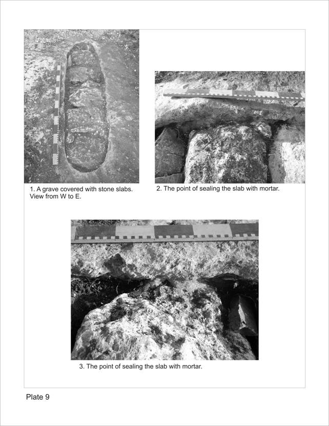 Among the twelve excavated graves, the preparation of the grave bottom was noted in only one of them because during the digging of the grave a pit was made in the central area. In order to level the bottom of the pit, it was repaired with earth and pebbles (Plate 8 / 1, 2). In only ten of twelve graves bone fragments were found (in a grave excavated in 2005 only two skull pieces were found on the bottom of the grave, which makes us believe that the grave had been emptied at a certain moment, and it is difficult to say whether this had been done in the ancient days or at present).