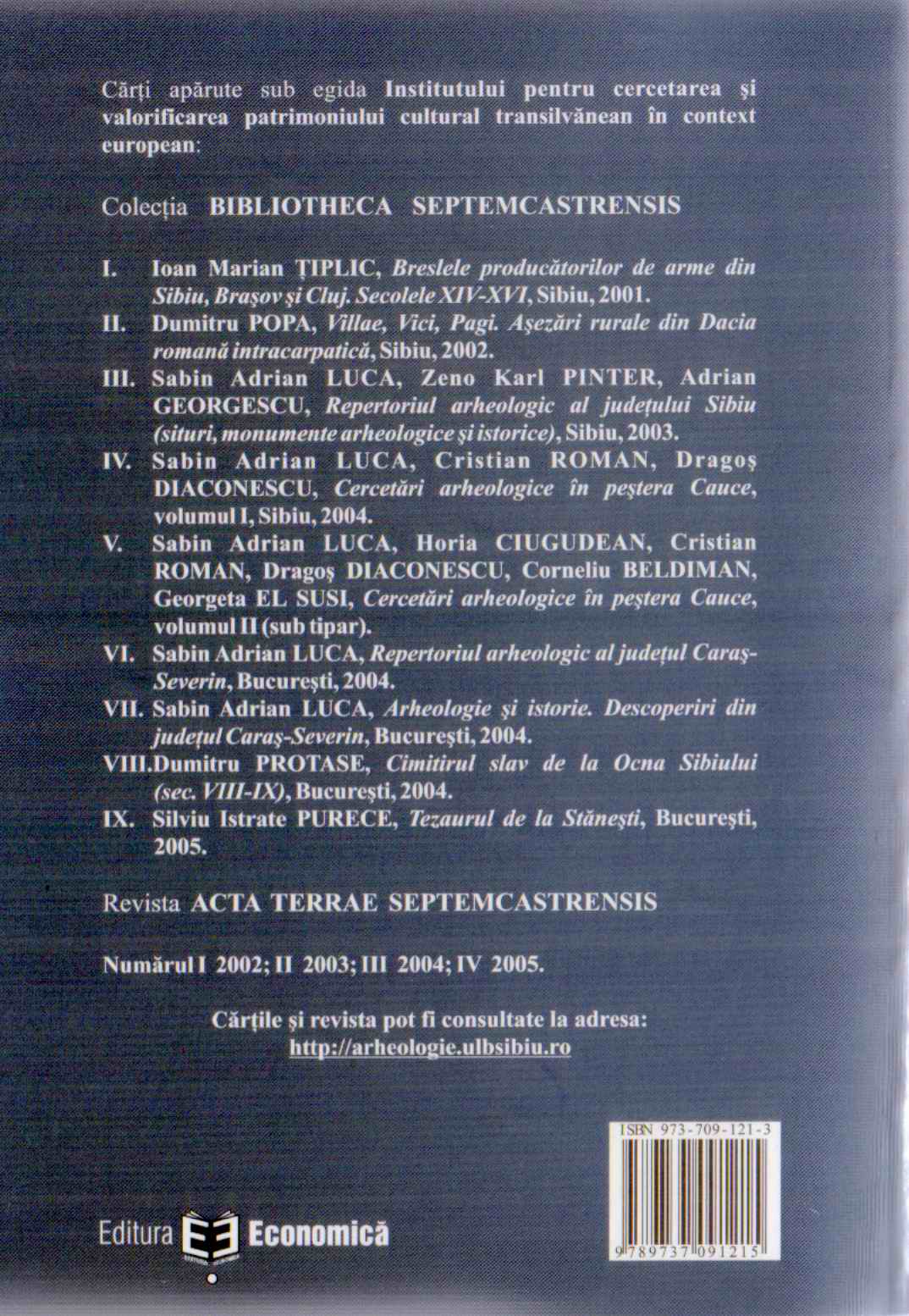 Material published in the Bibliotheca Septemcastrensis is covered by copyright. All rights are reserved under United States, European Union, Romanian and international copyright and other laws and conventions. Permissions Information Thank you for your interest in re-using copyrighted material originally published in Bibliotheca Septemcastrensis. Please contact Prof.univ.dr. Sabin Adrian Luca (e-mail: sabinadrian.luca@ulbsibiu.ro) if you intend to use Bibliotheca Septemcastrensis materials on the other web sites or in other printed and electronically forms. You are free to make links to our web site. If you would like a book for personal use, please search at Bibliotheca Septemcastrensis, and then download or order a printed form of the desired book. We encourage you to download and print a single copy for personal use of Bibliotheca Septemcastrensis books for noncommercial personal or educational use only; provided that (i) any permitted copies of Bibliotheca Septemcastrensis contain, in an unmodified form, any copyright or other proprietary rights notices contained in the Bibliotheca Septemcastrensis and an original source attribution to Institutul pentru Cercetarea si Valorificarea Patrimoniului Cultural Transilvanean in Context European and the applicable URL, and (ii) no modifications of any of the Bibliotheca Septemcastrensis books are made except as may be expressly provided by Institutul pentru Cercetarea si Valorificarea Patrimoniului Cultural Transilvanean in Context European or the third-party provider on the Web page containing the applicable Bibliotheca Septemcastrensis books. You acknowledge that Institutul pentru Cercetarea si Valorificarea Patrimoniului Cultural Transilvanean in Context European and/or third-party providers remain the owners of the Bibliotheca Septemcastrensis books and that you do not acquire any intellectual property rights in such Bibliotheca Septemcastrensis books by downloading or printing the Bibliotheca Septemcastrensis books for commercial purposes. |