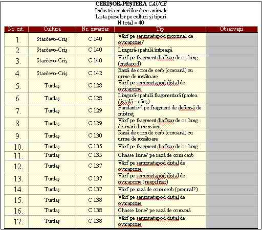 cioplite ale acestui nivel au fost analizate de inginerul Eugen Orlandea,