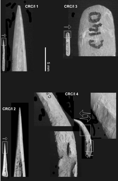 Cultura Coţofeni: piesele CRC/VI 8 – 11. Culture Coţofeni: les pièces CRC/VI 8 – 11. |
