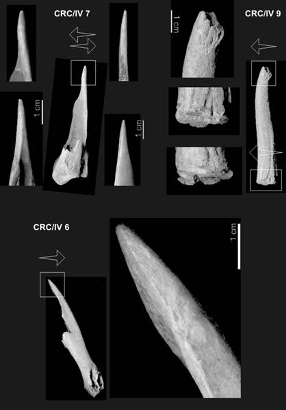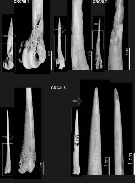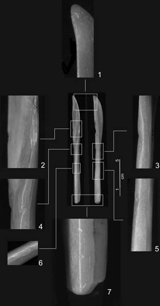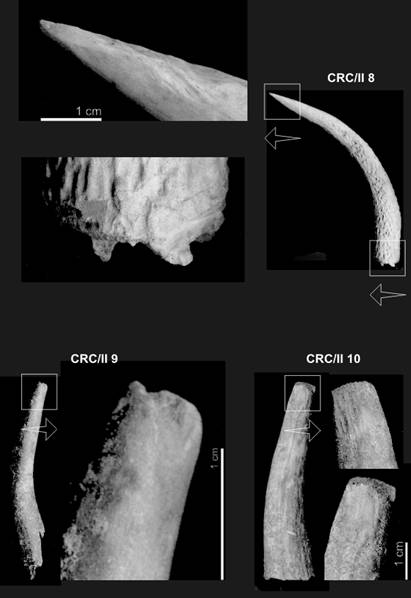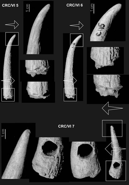 Cultura Coţofeni: detalii ale pieselor CRC/VI 5 – 7. Culture Coţofeni: détails des pièces CRC/VI 5 – 7. |