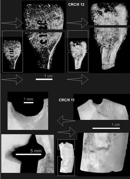 Cultura Turdaş: detalii ale pieselor CRC/II 11 – 12. Culture Turdaş: détails des pièces CRC/II 11 – 12. |