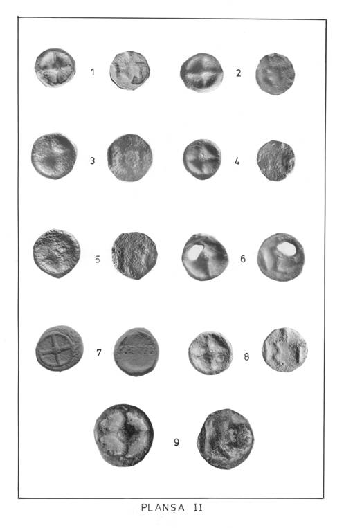 A. Aricescu, loc. cit., p. 7; C. Scorpan, Vârfuri de săgeţi - semne premonetare şi monede cu „roata” descoperite la Tomis, în SCN, 7, 1980, p. 25; M. Mănucu-Adameşteanu, loc. cit., p. 17.