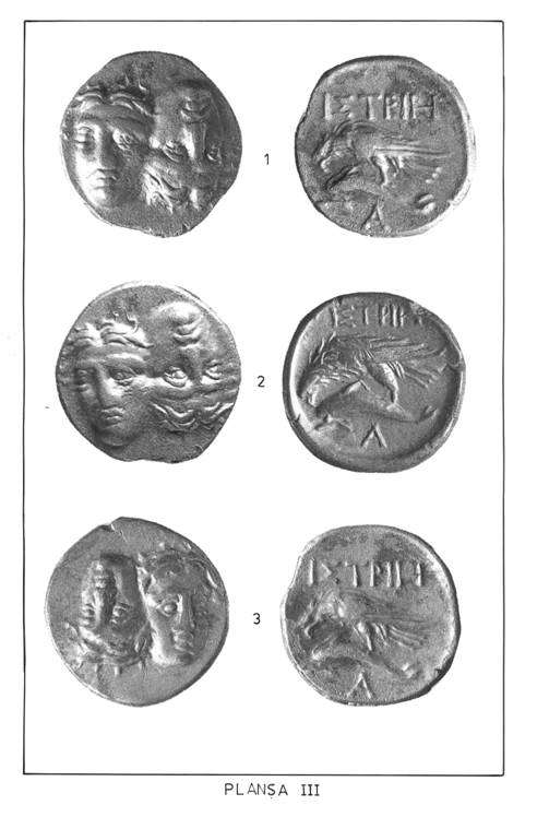 [53] V. Bude, O ipoteză nouă relativ la drahmele din Histria, în BSNR, 20, 1925, 55-56, p. 40-42; A. G. Zaginajlo, Izobraženie junošeskih golov na monetah Istrii, în Pamiatniki drevnyh kultur Severo-Zapadnogo Pričernomorija, Kiev, 1981, 1986, p. 95.
