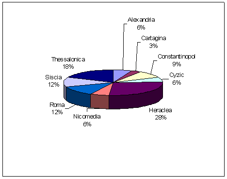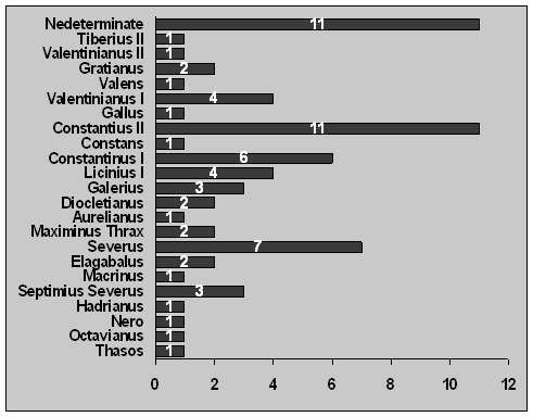TABELUL 4. REPARTIZAREA MONEDELOR DETERMINABILE DIN PERIOADA IMPERIALĂ, ALTELE DECÂT CELE COLONIALE, PE ATELIERE MONETARE