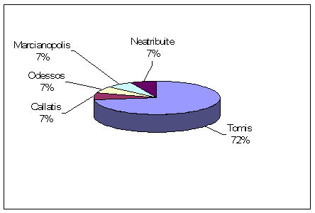 T-Tomis, C-Callatis, O-Odessos, M-Marcianopolis, N-Neatribiuite