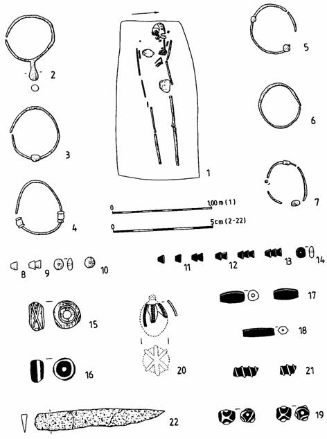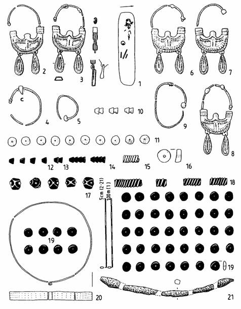 Pl. XXXVII. Orăştie – Dealul Pemilor X8. 1. M7; 2-21. inventar funerar M7 |