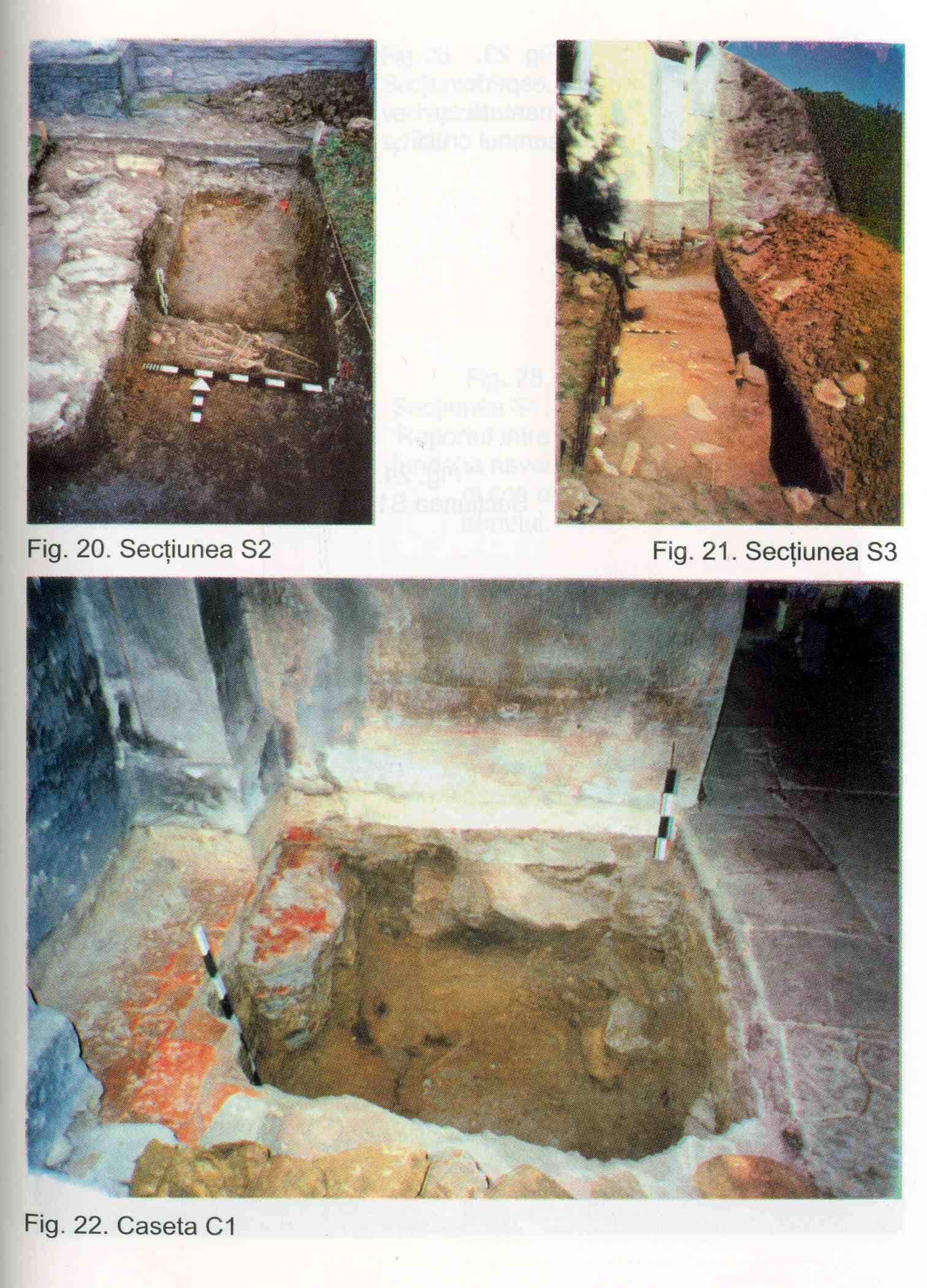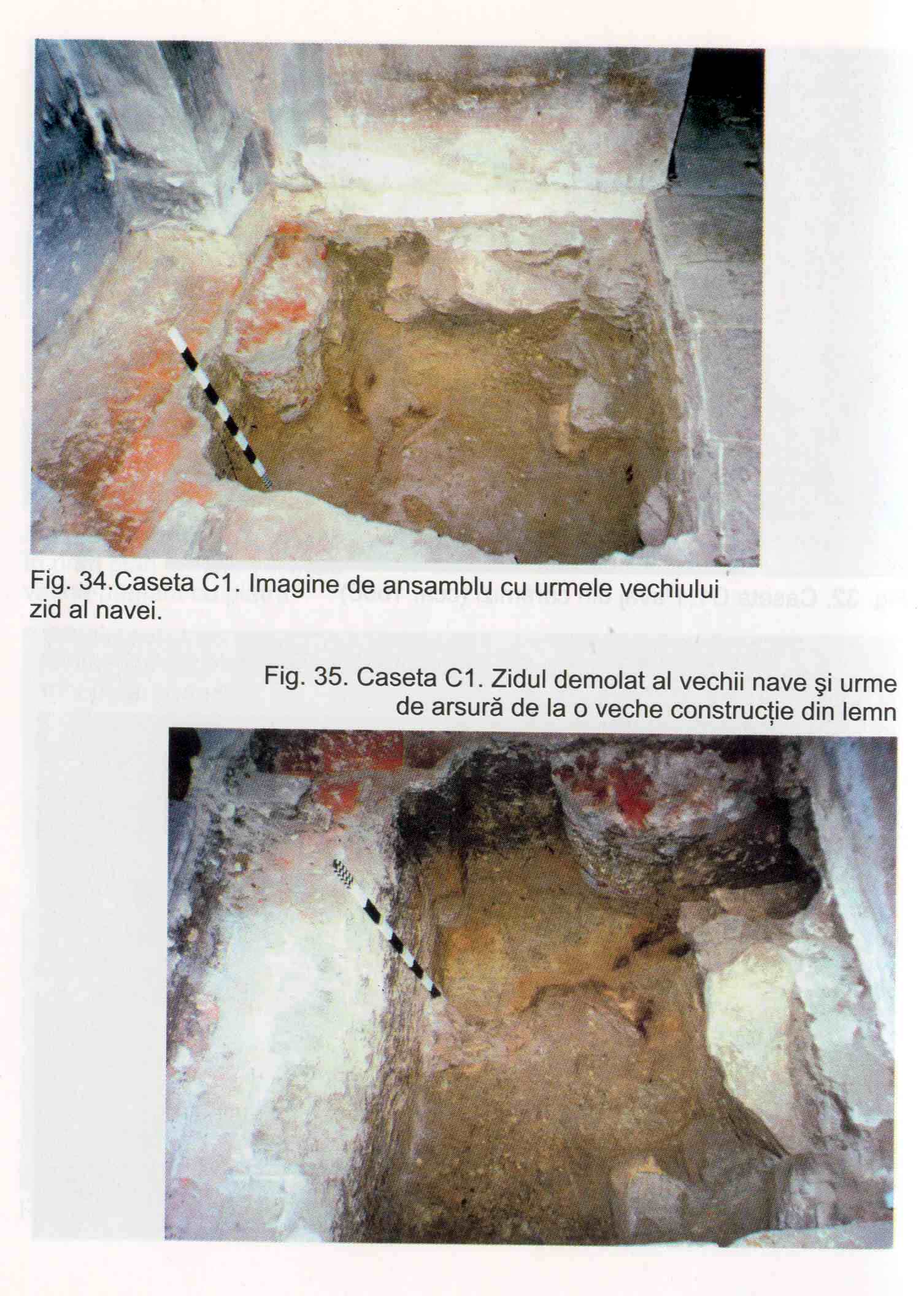 34.Caseta C1. Imagine de ansamblu cu urmele vechiului zid al navei.