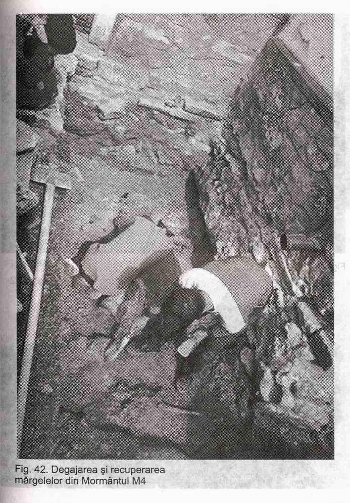 42. Degajarea şi recuperarea mărgelelor din Mormântul M4