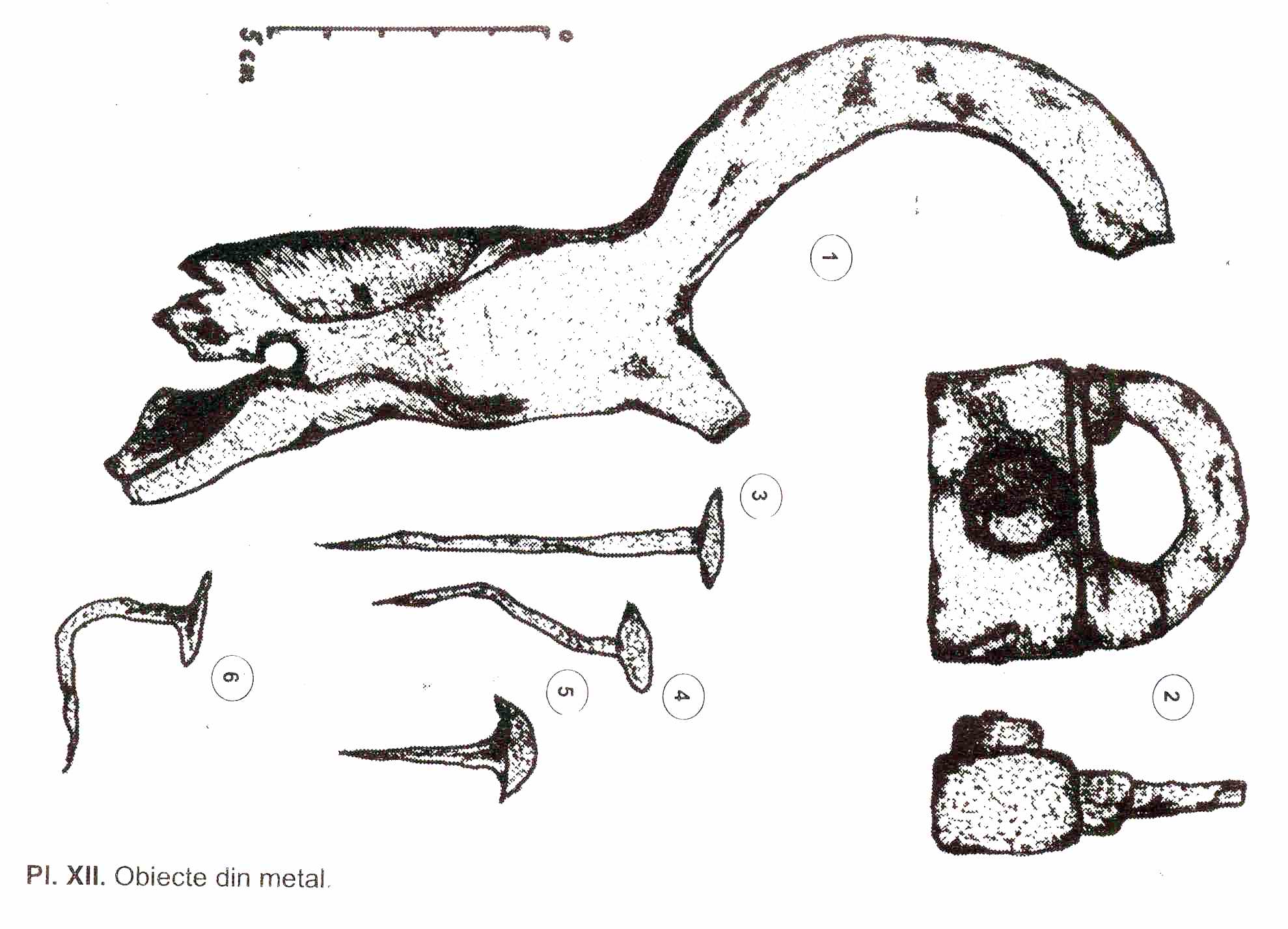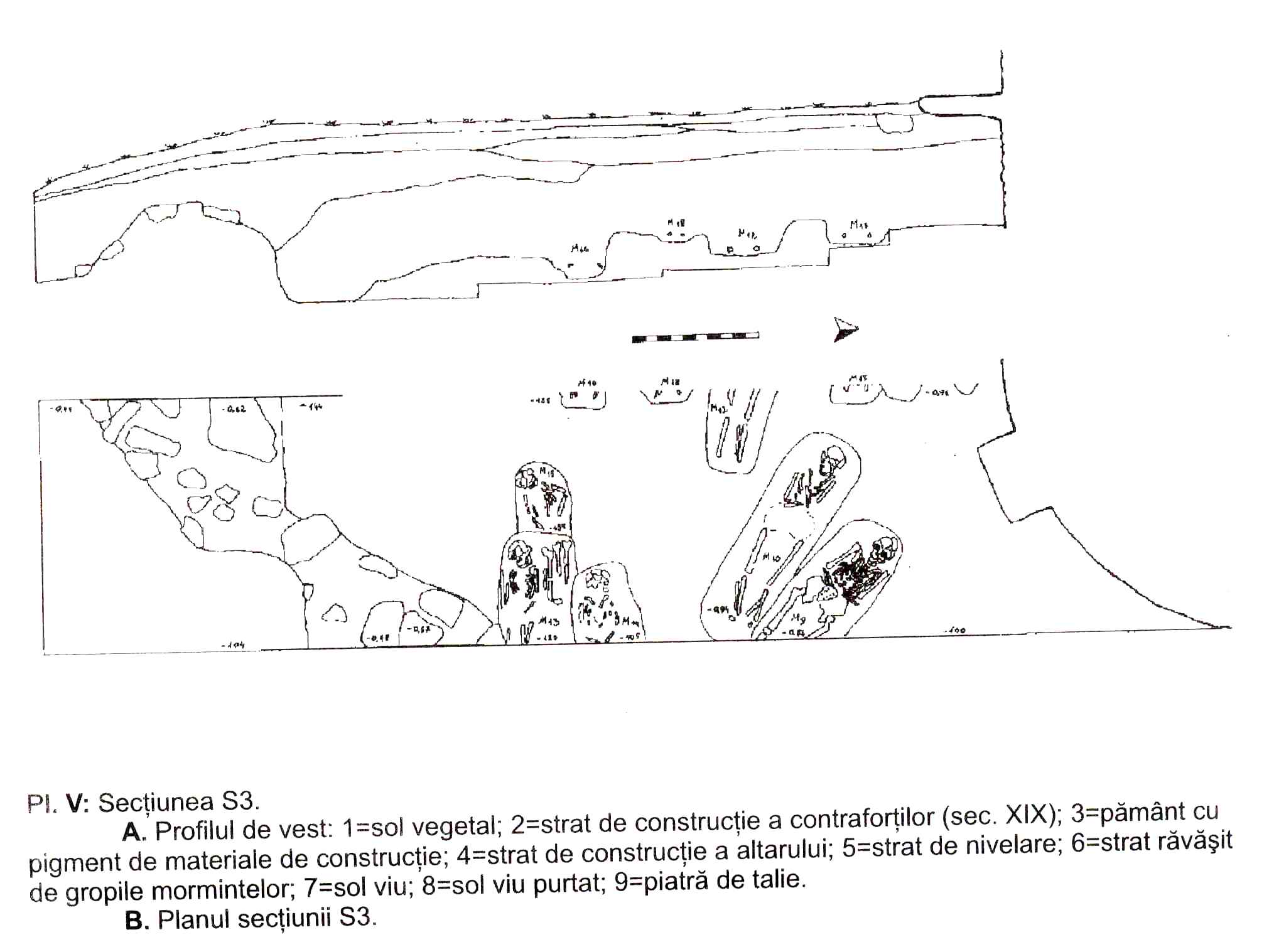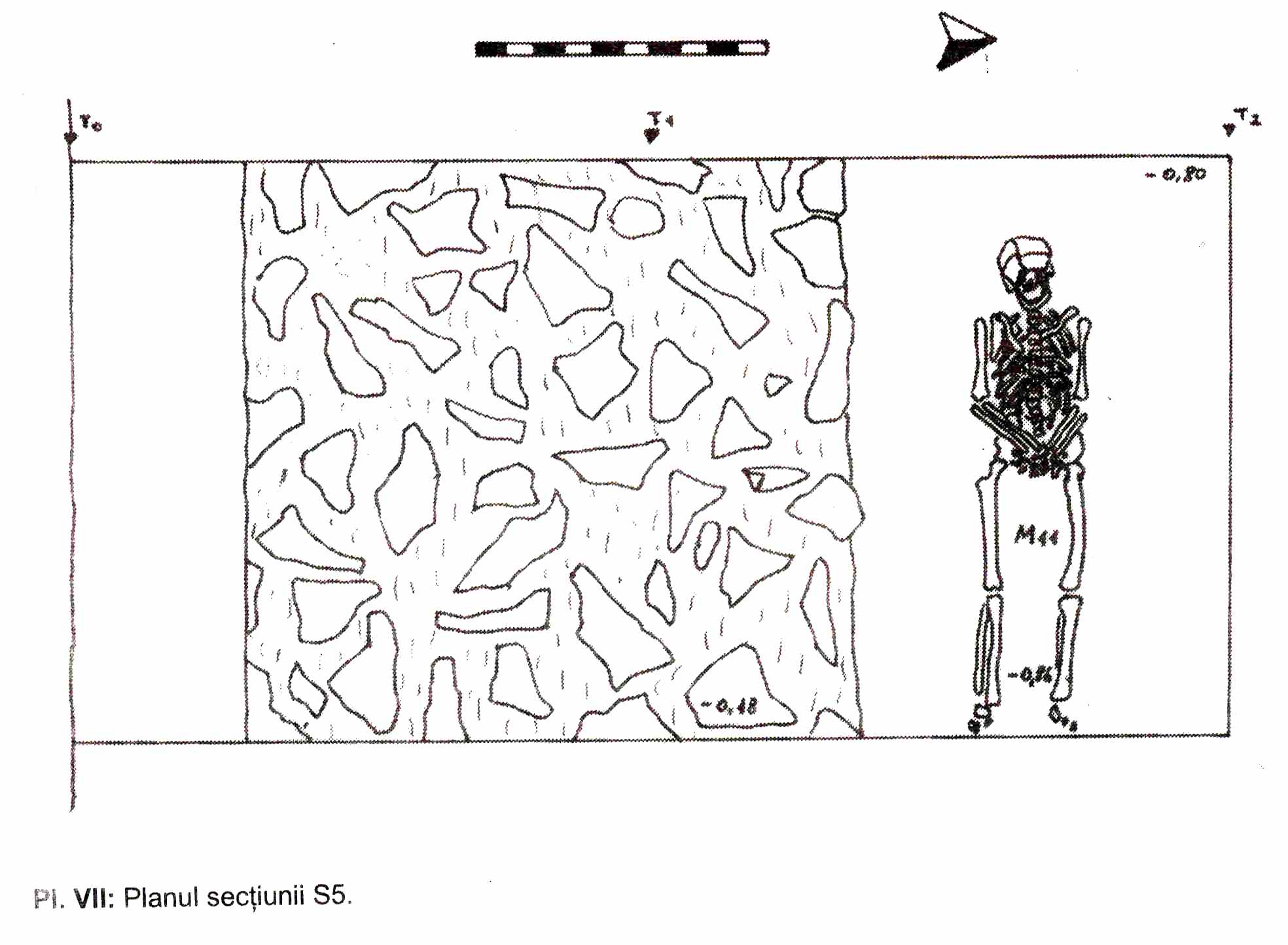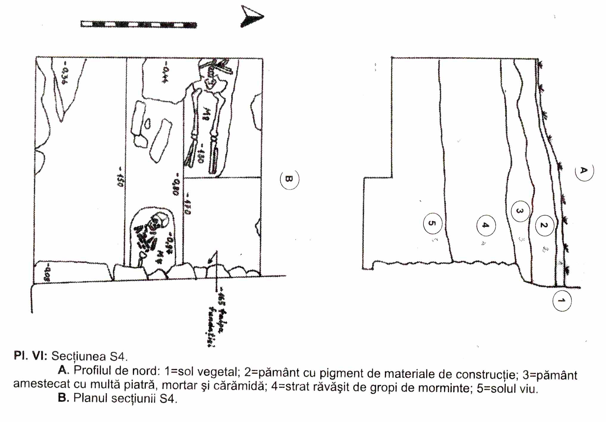 VI: Secţiunea S4. A. Profilul de nord: 1=sol vegetal; 2=pământ