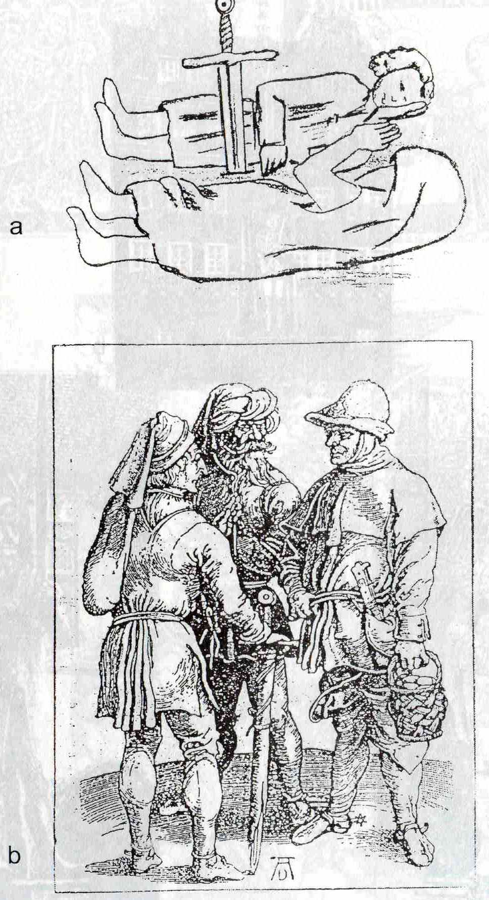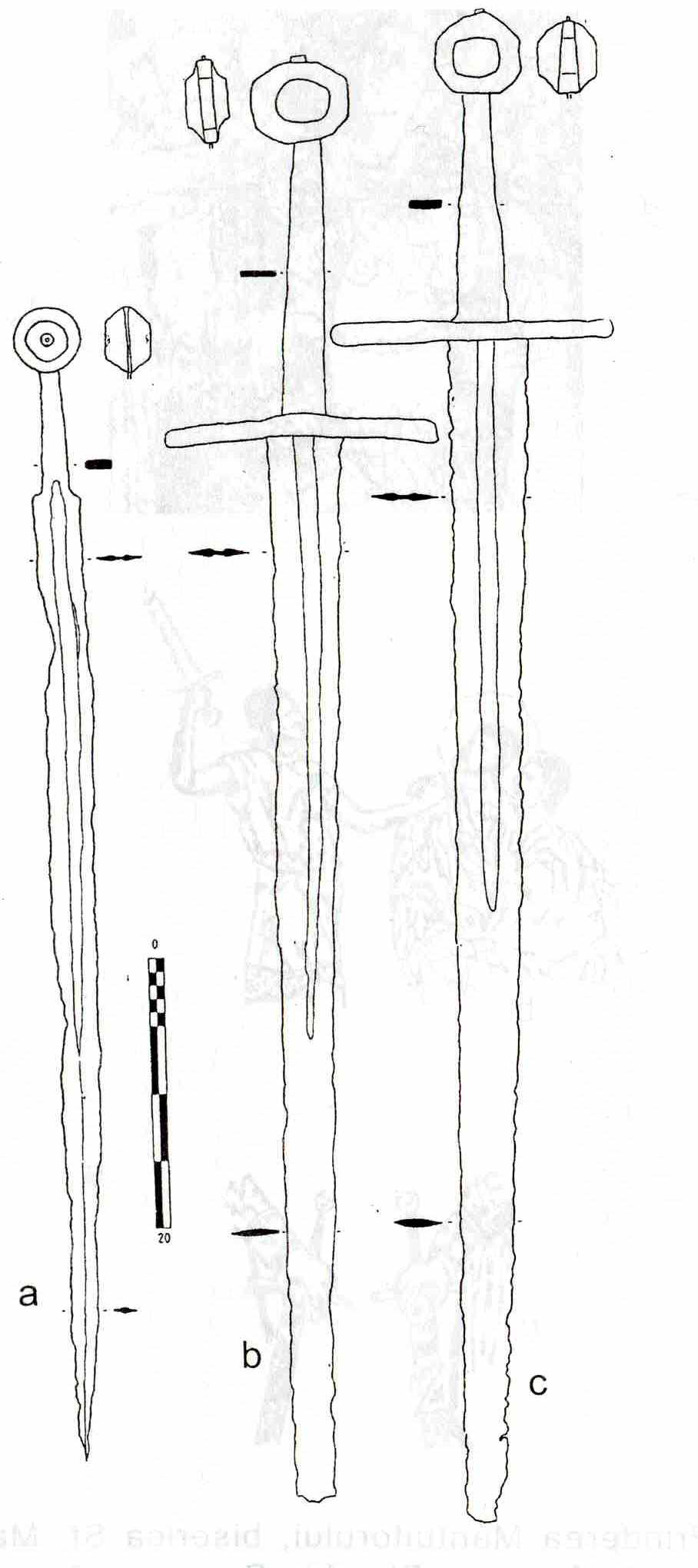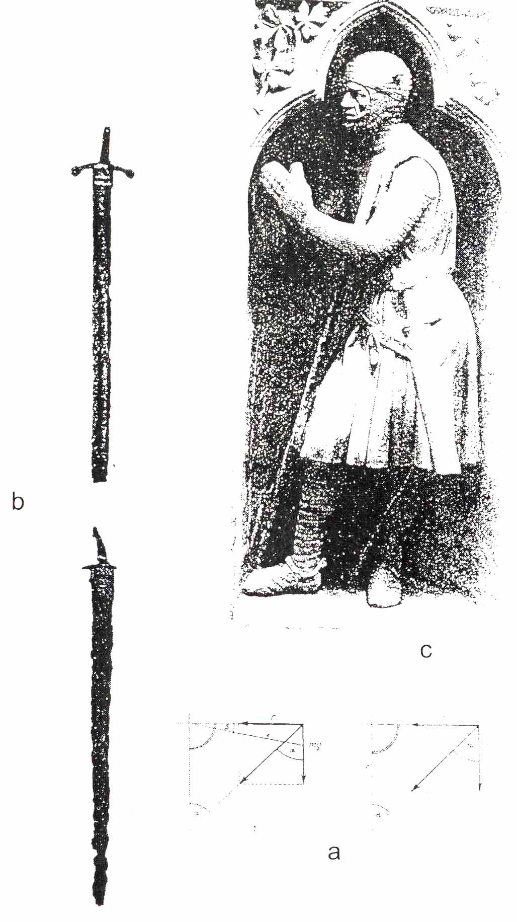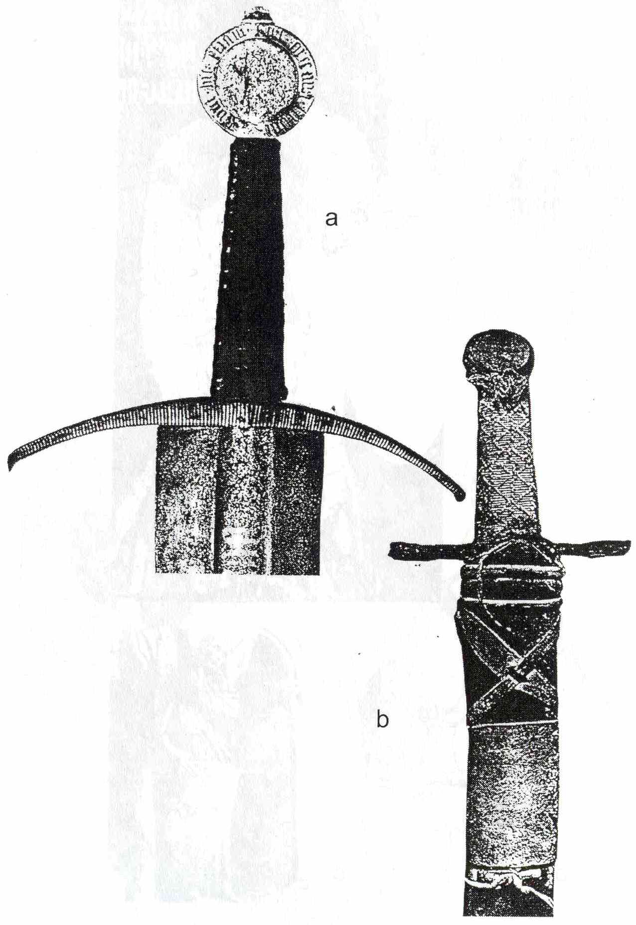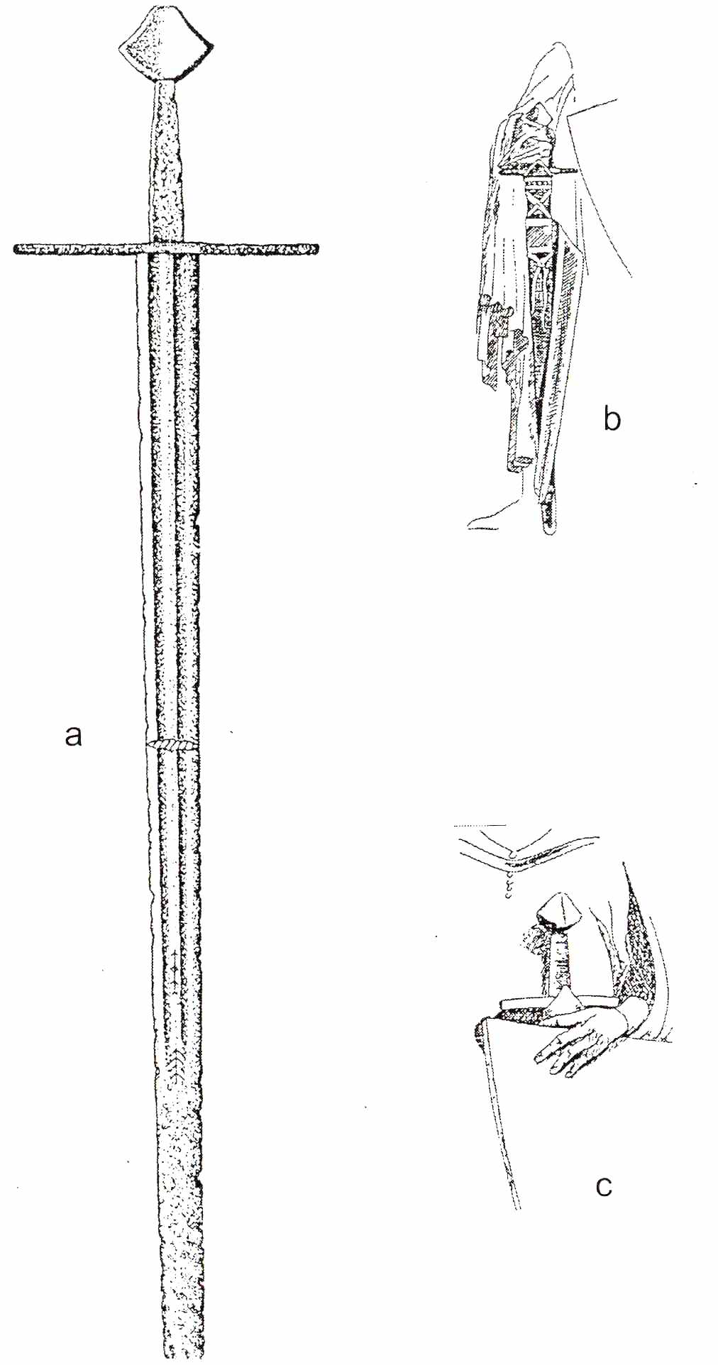 (după Faber); b, Spadă ieşită din uzul cavalerilor, folosită