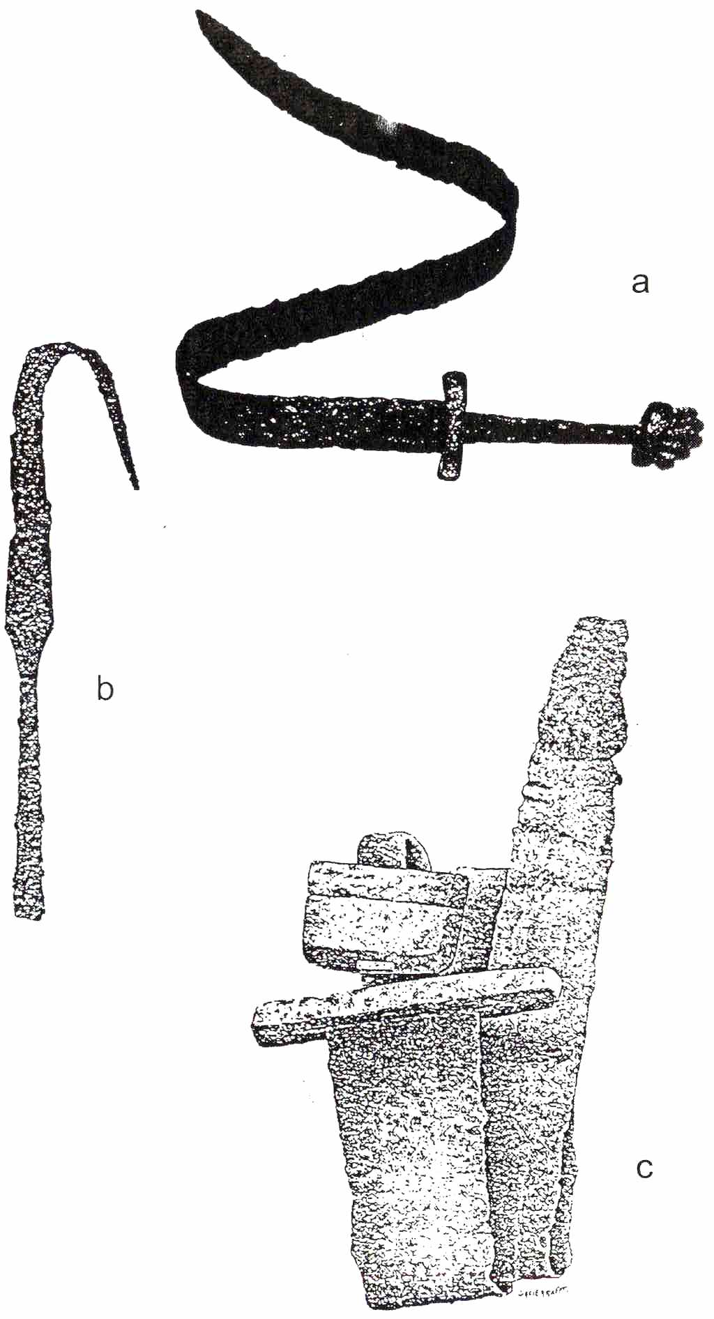 Vikevik; c, spadă deformată din mormântul de la Store-Finstad. (după