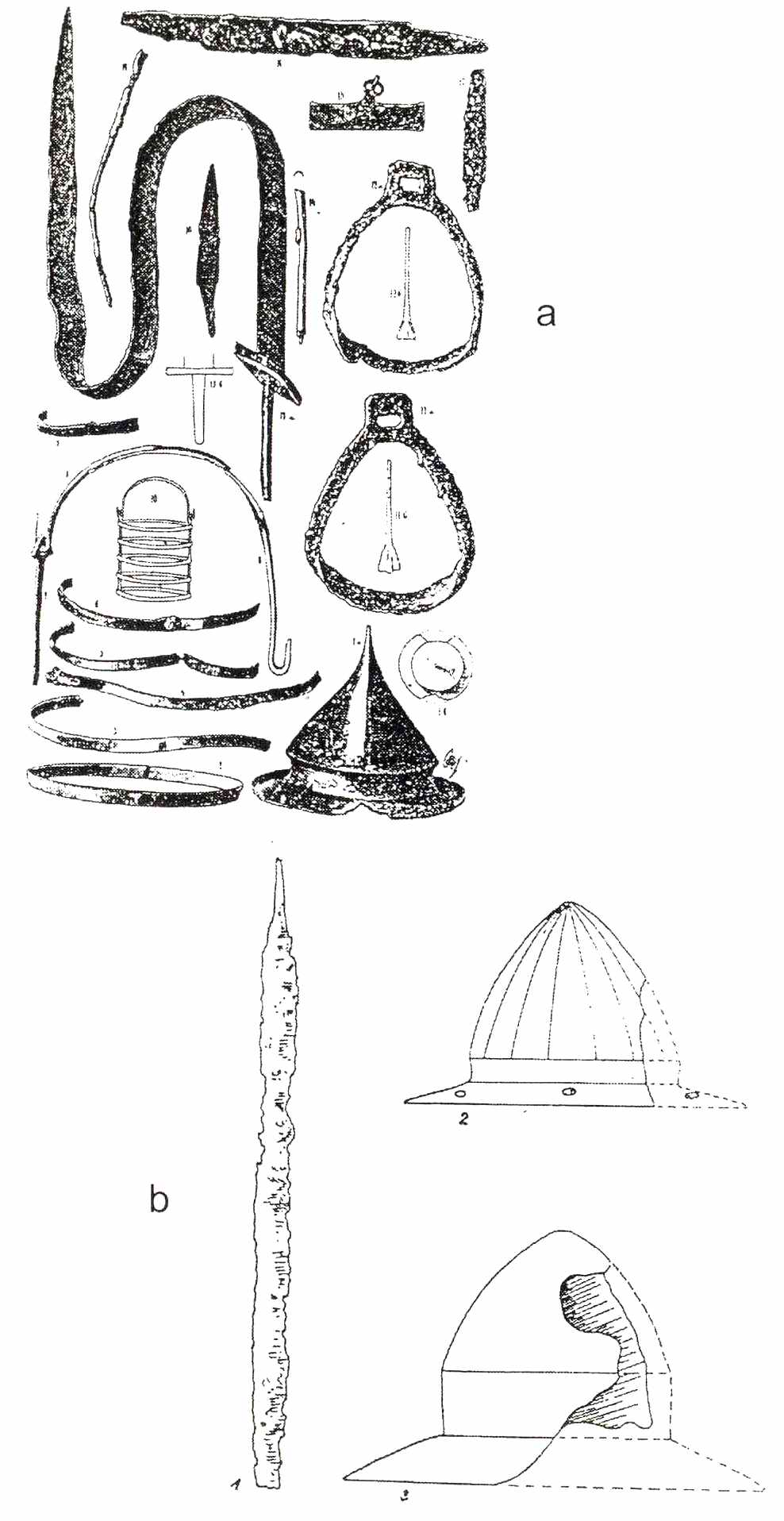 şi buton nordic montat ulterior. (după Ruttkay); b, buton din două
