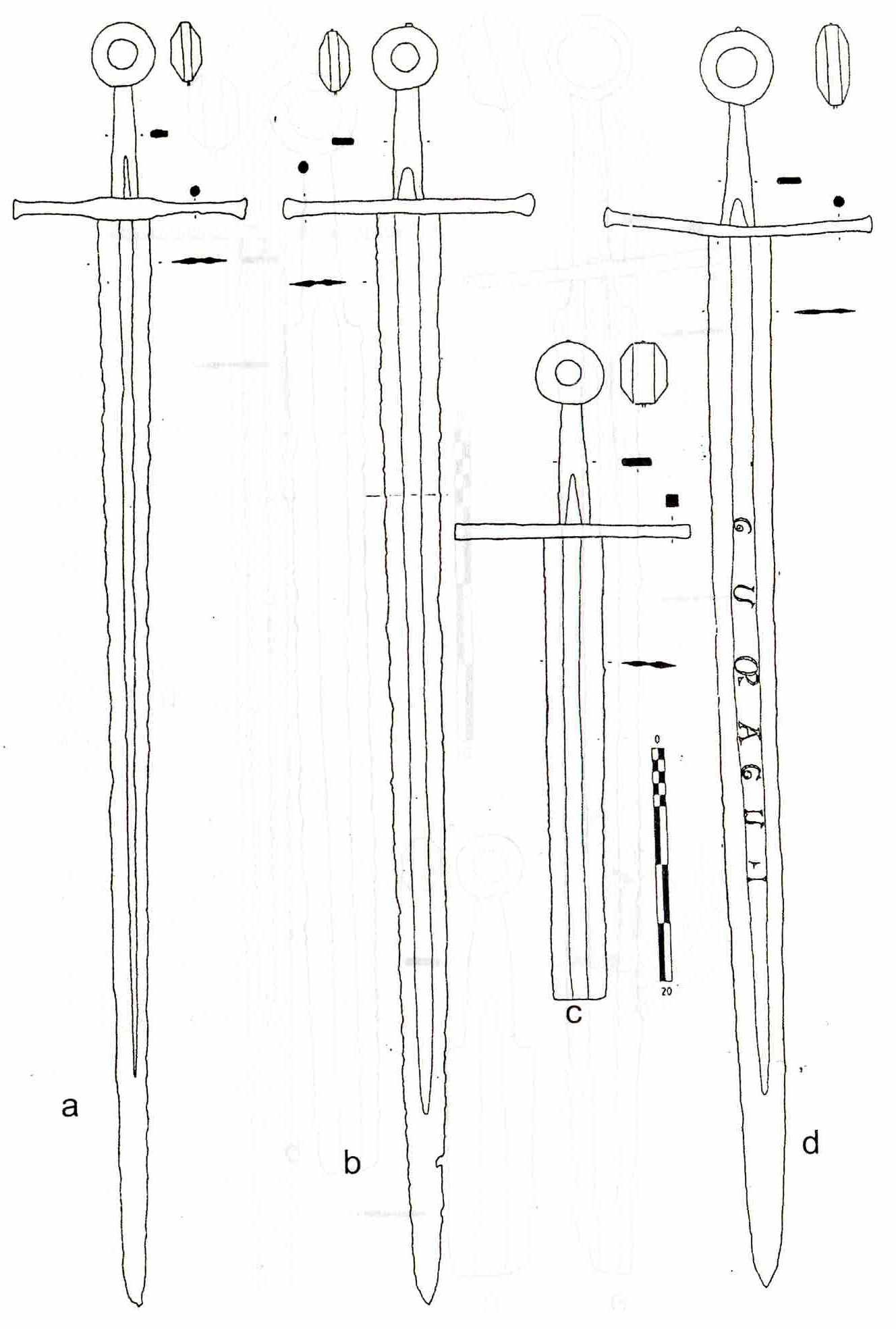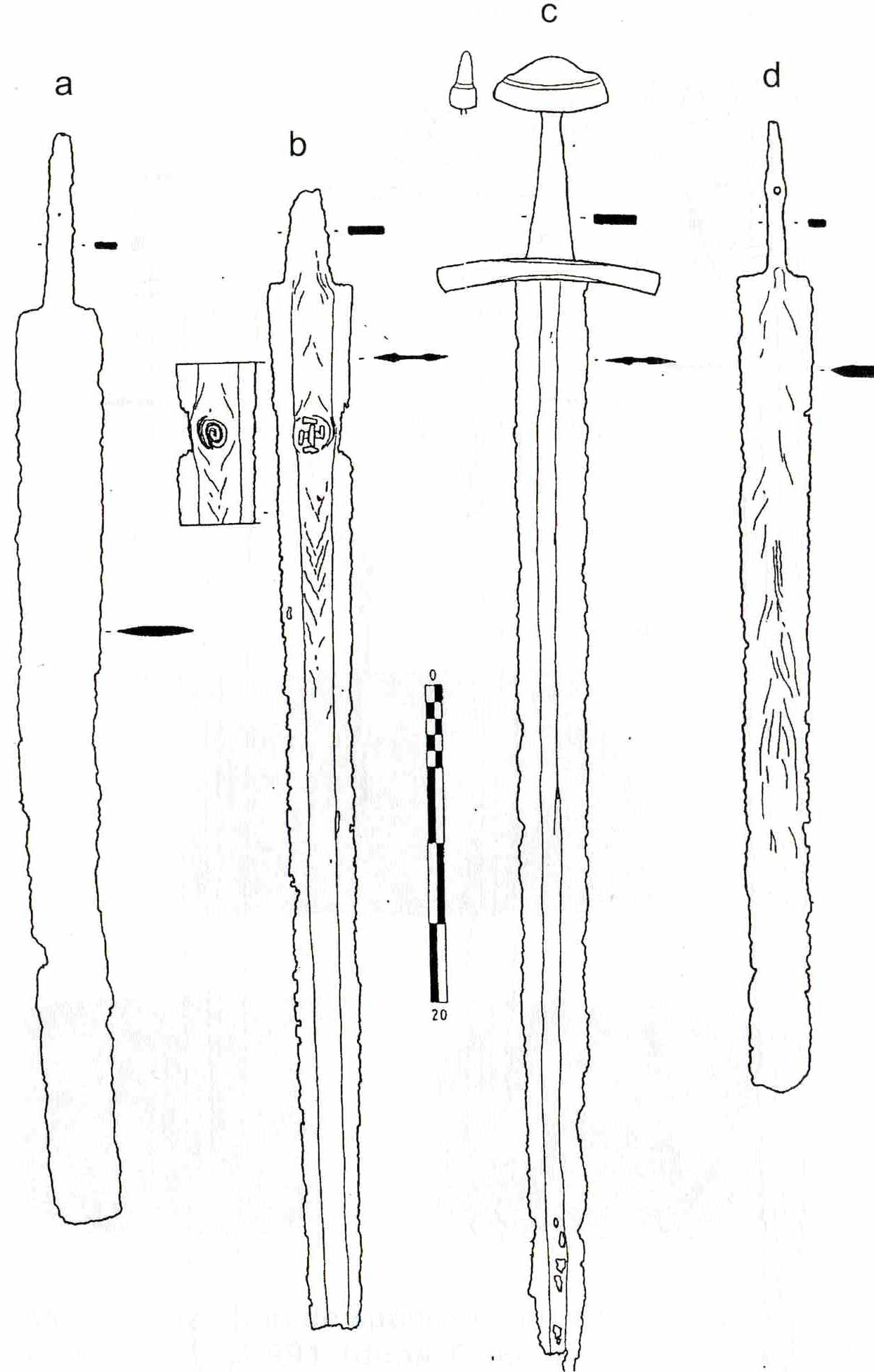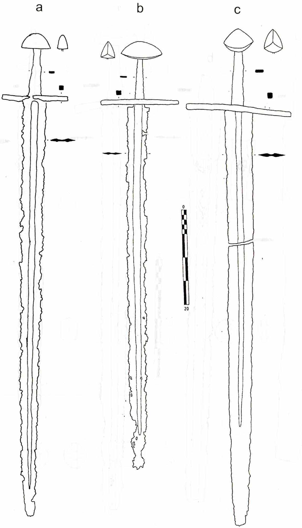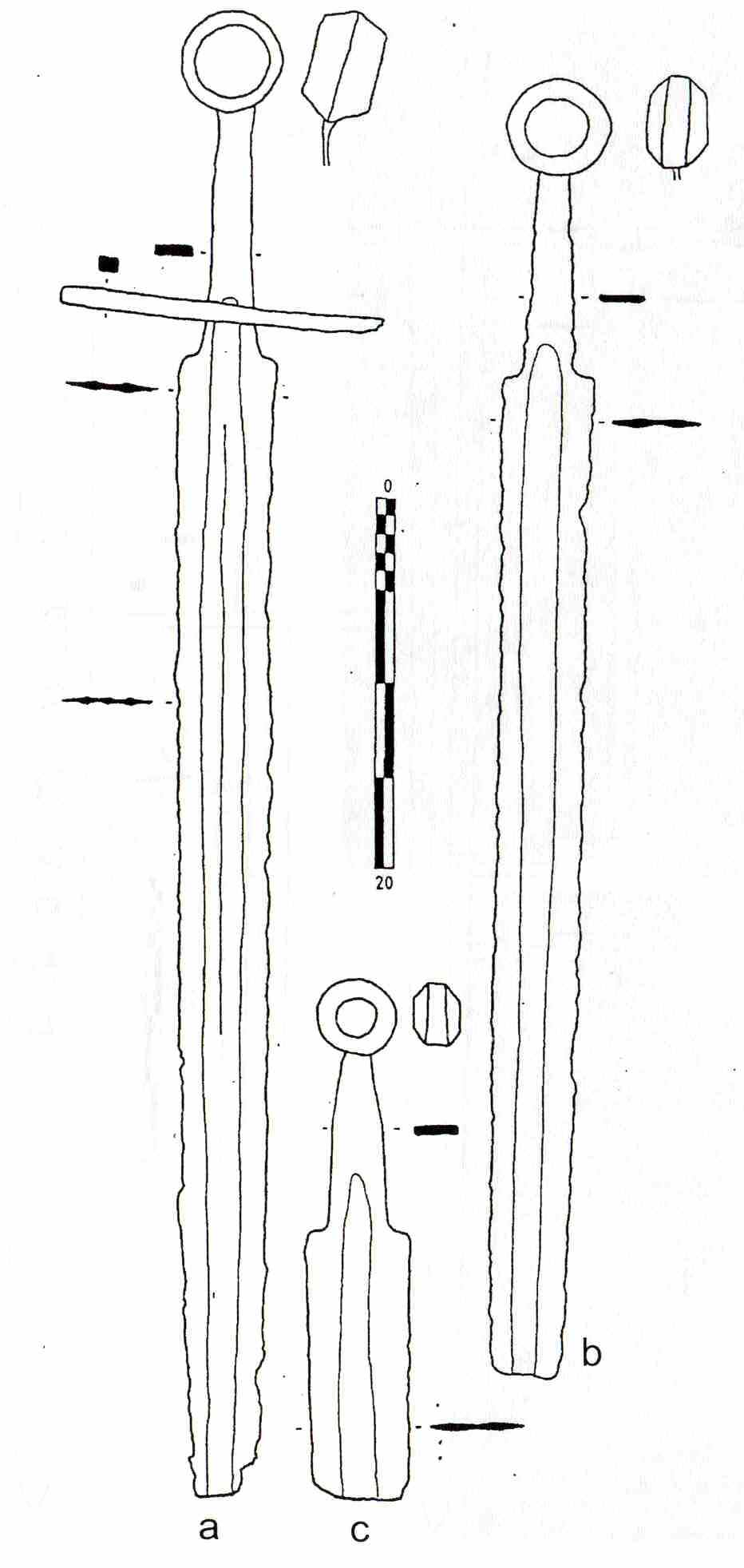 rituale de arme în Peninsula Scandinavică; a, spadă păstrată