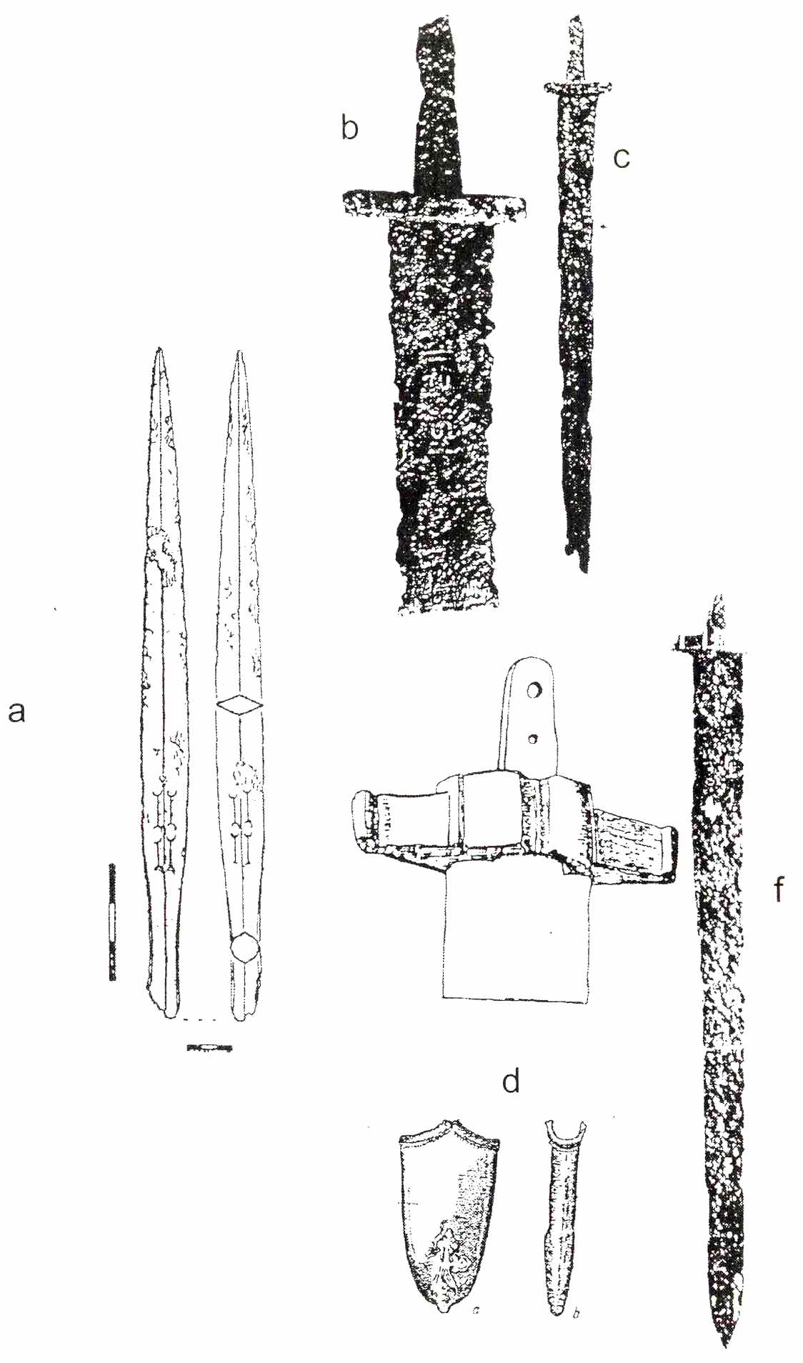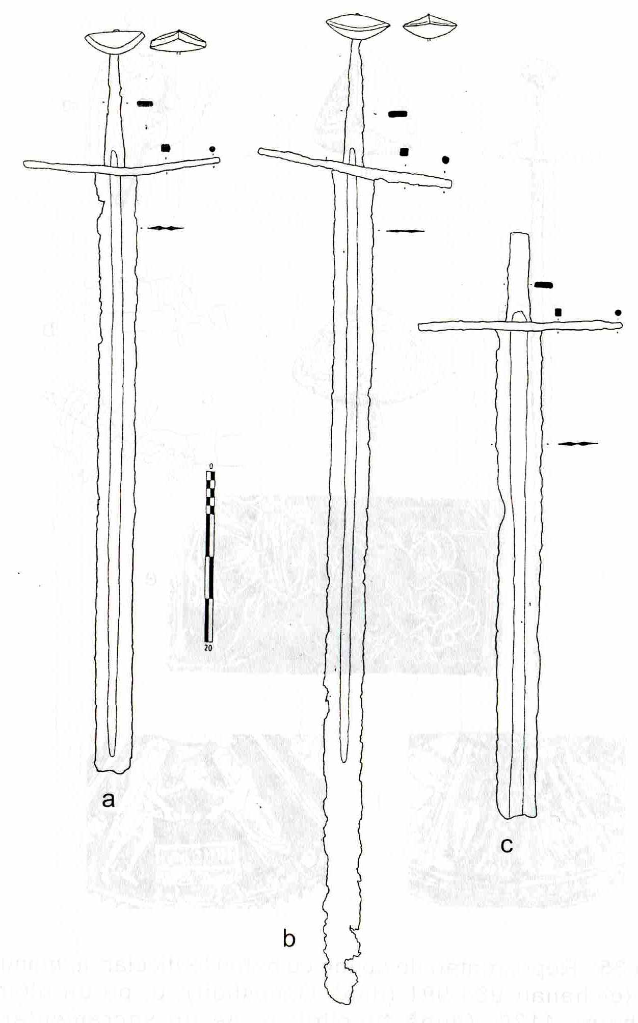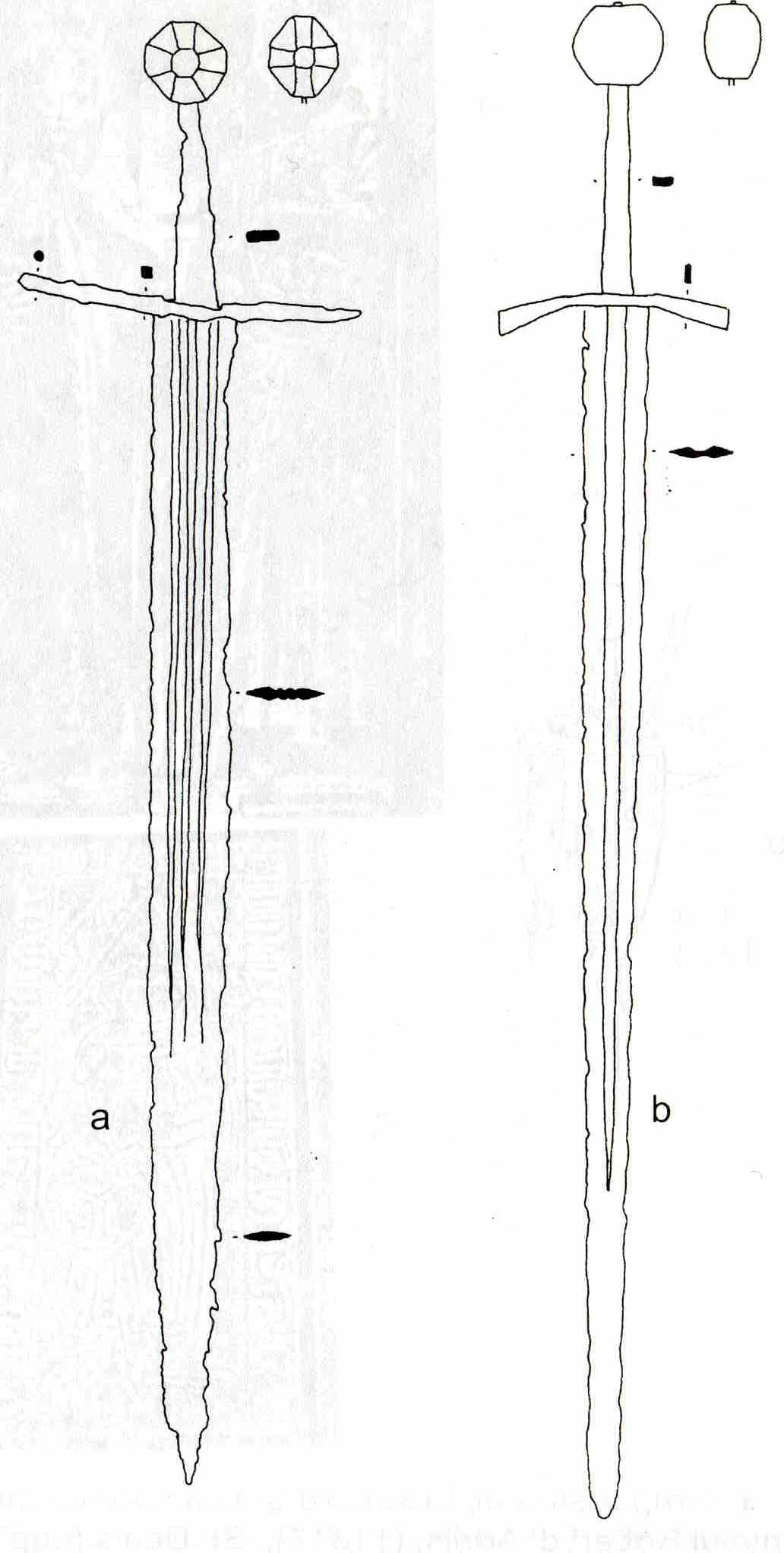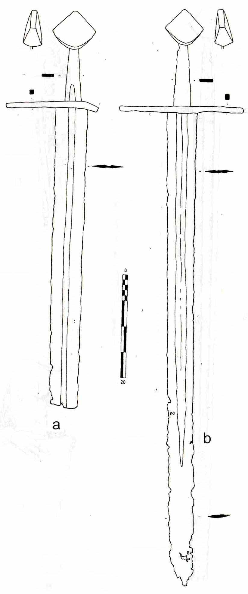rituale de arme în Peninsula Scandinavică; a, spadă păstrată