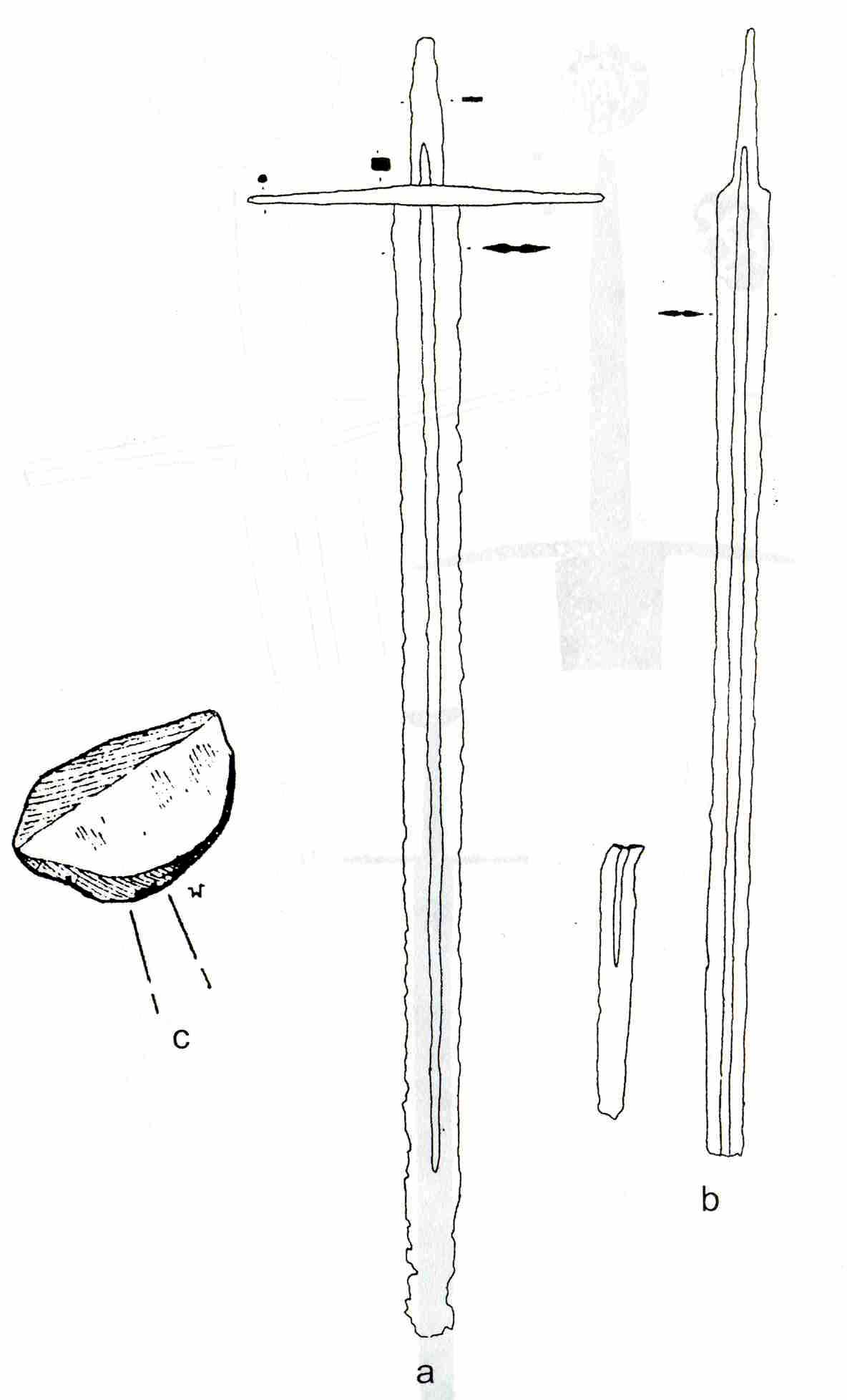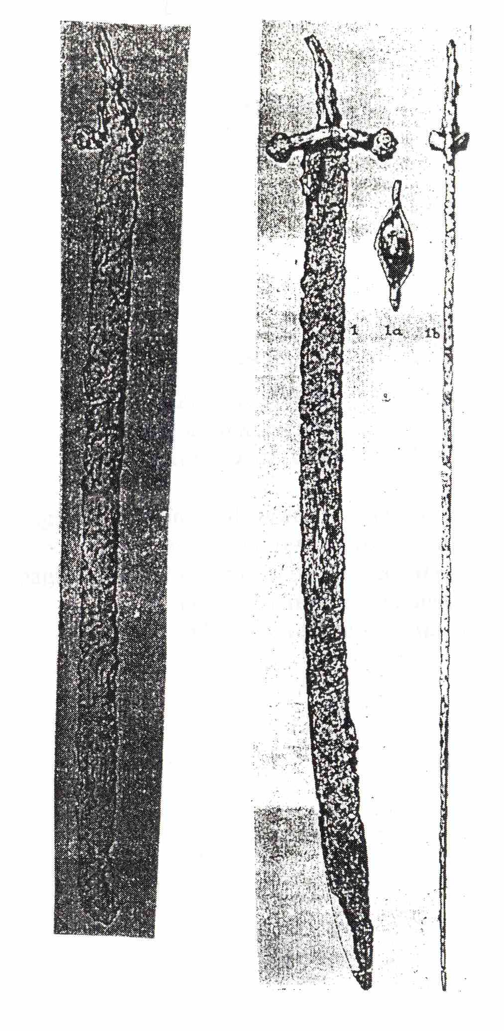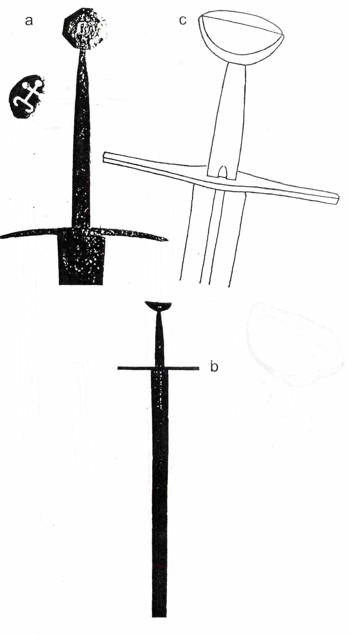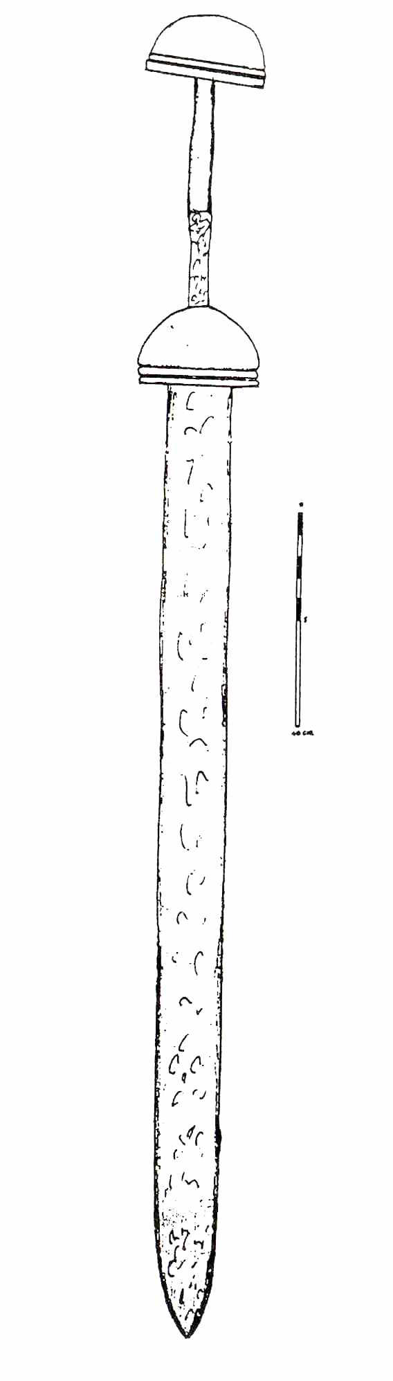 rituale de arme în Peninsula Scandinavică; a, spadă păstrată