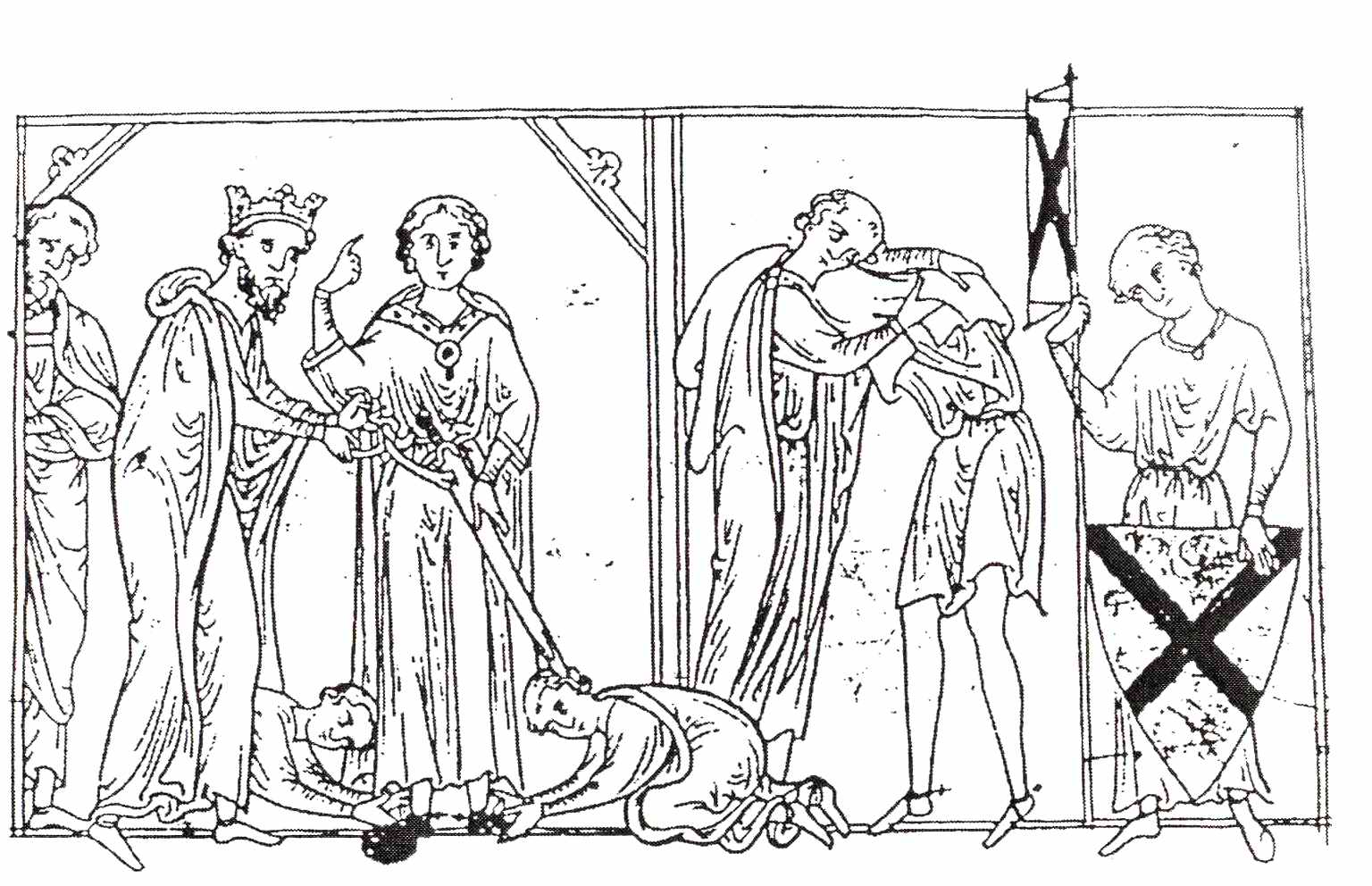 Planşa 7: Codexul de la Oxford (cca. 1250) reprezentând încingerea cu spadă. (după Ullstein Weltgeschichte)